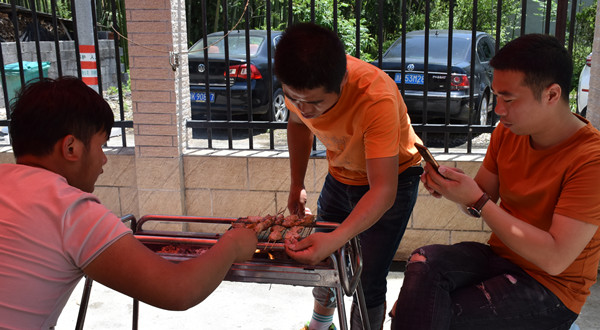 活動(dòng)中,每個(gè)員工都自己動(dòng)手,有的負(fù)責(zé)生火炒菜、有的負(fù)責(zé)包水餃、有的負(fù)責(zé)后勤服務(wù),制作部的男生們負(fù)責(zé)燒烤,女生媽媽們負(fù)責(zé)照顧孩子做游戲,大家分工合作、默契配合,親手烹制了一頓豐盛的佳肴。
