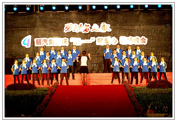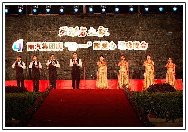 4月29日晚,由麗汽集團(tuán)舉辦的“慶五一”獻(xiàn)愛(ài)心歌詠晚會(huì)在市區(qū)納愛(ài)斯健身廣場(chǎng)隆重舉行。市交通局、市交警支隊(duì)、市文明辦、市運(yùn)管處、市慈善總會(huì)等單位領(lǐng)導(dǎo)應(yīng)邀出席演唱會(huì)。中國(guó)音樂(lè)家協(xié)會(huì)會(huì)員、市音樂(lè)家協(xié)會(huì)主席劉程遠(yuǎn),中國(guó)音樂(lè)家協(xié)會(huì)會(huì)員、麗水學(xué)院藝術(shù)分院院長(zhǎng)楊建偉應(yīng)邀擔(dān)任歌詠比賽專(zhuān)家評(píng)委。麗汽集團(tuán)黨政工領(lǐng)導(dǎo),各二級(jí)單位的員工代表,及集團(tuán)公司2009年度各類(lèi)先進(jìn)代表共700余人參加演唱會(huì)。