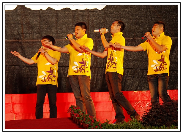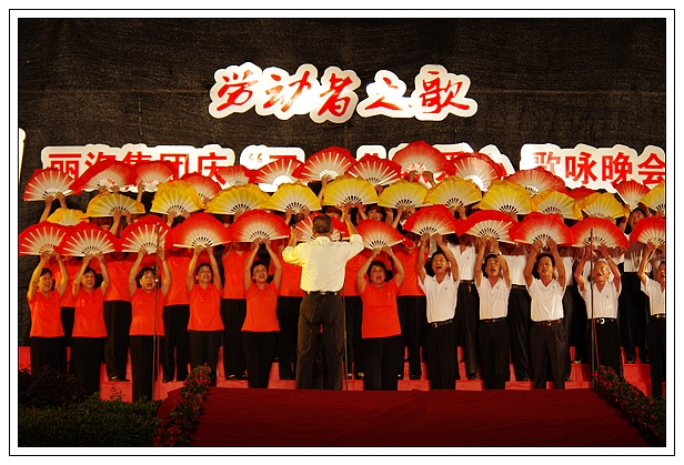 晚會(huì)在大合唱《咱們工人有力量》歌聲中拉開(kāi)帷幕,麗汽集團(tuán)各二級(jí)單位組織的12支演唱隊(duì)伍依次上臺(tái),分別參加大合唱組和小組唱組的比賽??炜凸具x送的《天路》、南明賓館選送的《打起手鼓唱起歌》分別獲得大合唱組和小組唱組的一等獎(jiǎng)客運(yùn)西站選送的《團(tuán)結(jié)就是力量》、集團(tuán)公司機(jī)關(guān)選送的《我和我的祖國(guó)》分別獲得大合唱組和小組唱組的二等獎(jiǎng)。