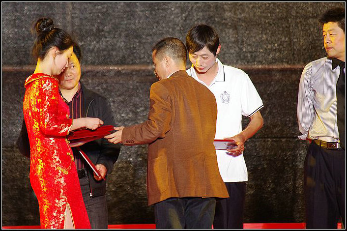集團(tuán)公司總經(jīng)理虞大貴為演唱會(huì)二等獎(jiǎng)單位頒獎(jiǎng)