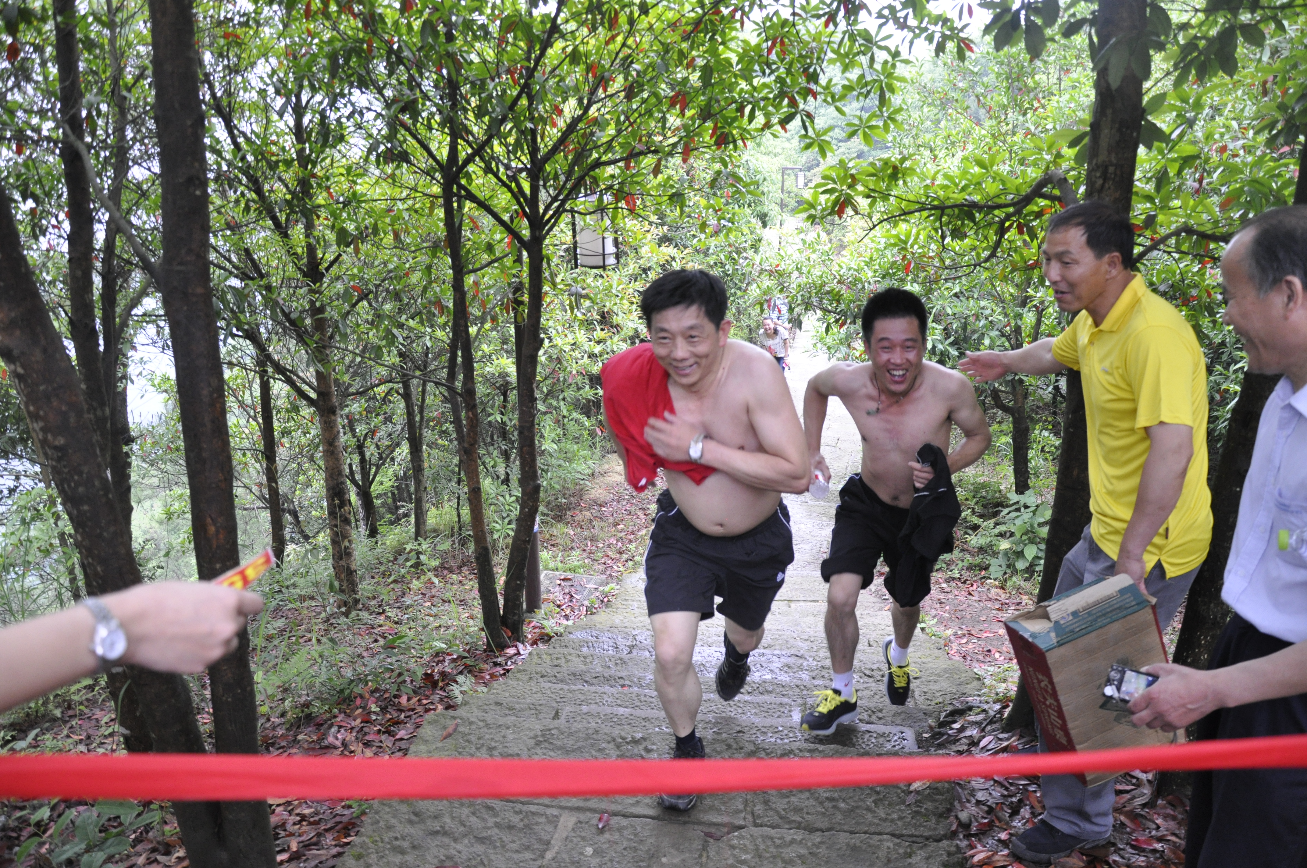 因拔河比賽冠軍要在運(yùn)動(dòng)會(huì)正式比賽期間產(chǎn)生,因此登山比賽也成為了集團(tuán)公司第五屆職工運(yùn)動(dòng)會(huì)產(chǎn)生首個(gè)冠軍的比賽項(xiàng)目。隨著裁判員的一聲令下,54名運(yùn)動(dòng)員爭(zhēng)搶著向著終點(diǎn)跑去。14分38秒后,快客分公司曾國(guó)偉第一個(gè)跑著經(jīng)過終點(diǎn);客運(yùn)東站樂進(jìn)15分16秒后第二個(gè)經(jīng)過終點(diǎn),客長(zhǎng)運(yùn)分公司鄭雅明以16分07秒居第三。