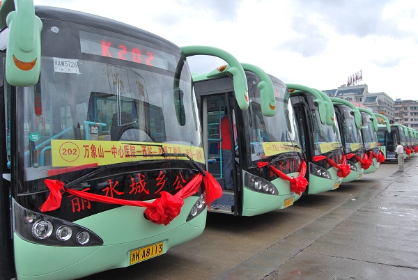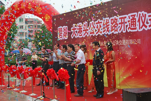 原客長(zhǎng)運(yùn)公司經(jīng)營(yíng)的東站至碧湖、東站至大港頭班線,日前移交城鄉(xiāng)公交公司,開通市區(qū)萬(wàn)象山至碧湖、火車站至大港頭公交班線。并于9月30日舉行開通儀式,葉朝丐副市長(zhǎng)、劉世書秘書長(zhǎng)及市財(cái)政局、 市國(guó)資委、市發(fā)改委、市開發(fā)區(qū)管委會(huì)、蓮都區(qū)政府、麗汽集團(tuán)等單位領(lǐng)導(dǎo)參加了開通儀式。市建設(shè)局劉旭東副局長(zhǎng)主持開通儀式。