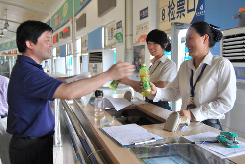 為做好夏季防暑降溫工作,今年集團公司除發(fā)放清涼飲料費外、還在給全體在崗員工每人發(fā)放了五豐冷食冷飲票。在做好員工的防暑降溫工作的同時,集團公司客運東、西站候車廳所有空調(diào)全部啟用,客運東站還打開吊扇,確保室內(nèi)空氣的流通,為旅客營造了舒適、清涼的候車環(huán)境,"流動之家"服務(wù)班還在原來送茶水的基礎(chǔ)上,增添了送涼茶(金銀花茶)服務(wù)項目,受到旅客的好評。