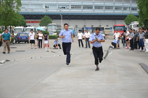 各分公司、子公司的11支義務(wù)消防隊參加了消防接力比賽。經(jīng)過角逐,集團本部、伊翔公司、客運東站分獲比賽前三名。