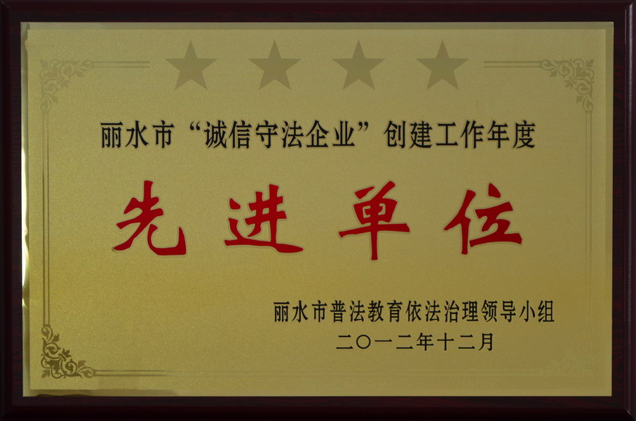 2012年麗水市“誠(chéng)信守法企業(yè)”創(chuàng)建工作年度先進(jìn)單位