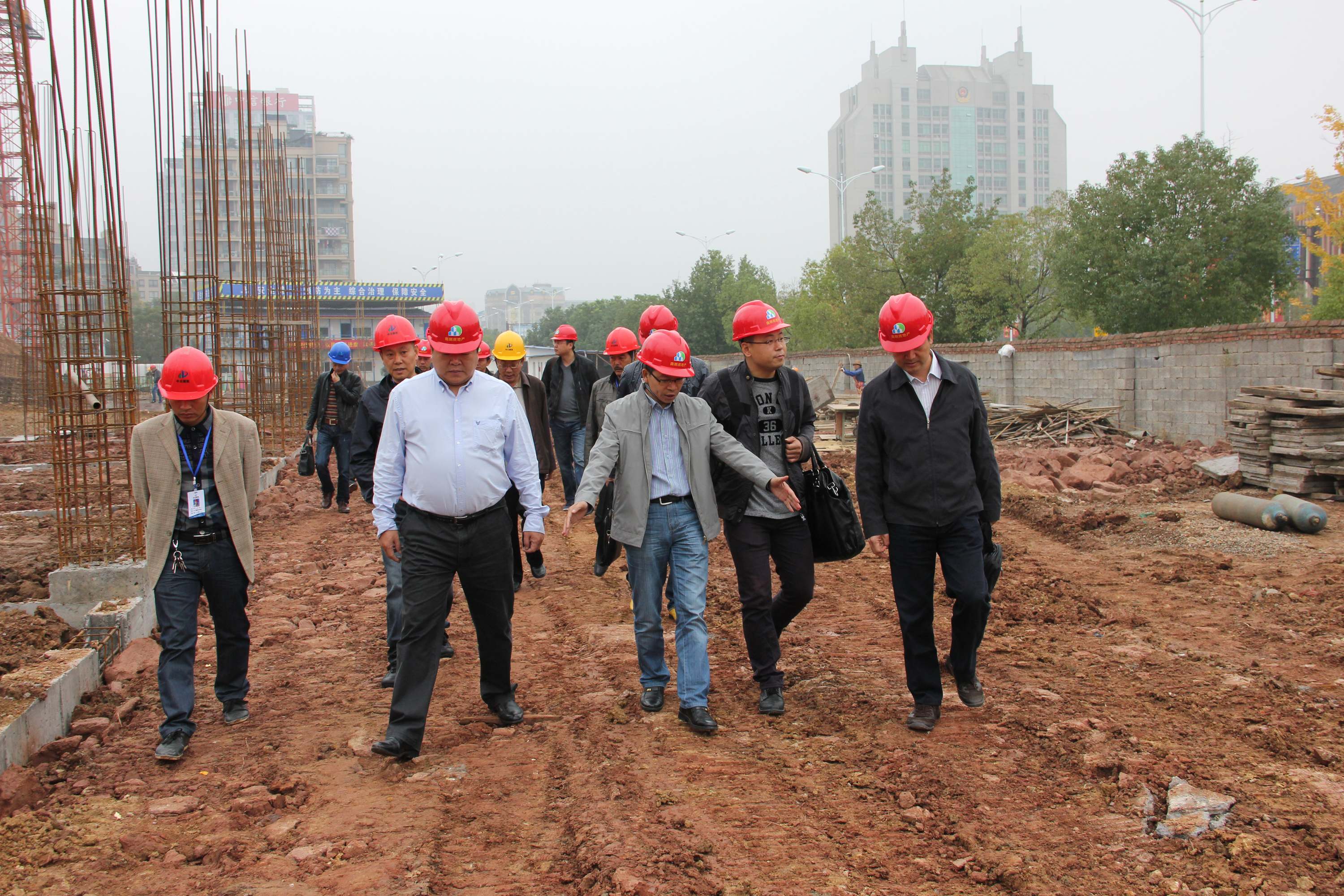 圖為集團(tuán)公司領(lǐng)導(dǎo)在工地現(xiàn)場(chǎng) |