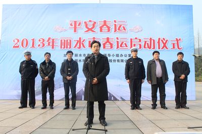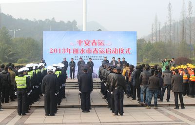1月25日早上8:45時(shí), “平安春運(yùn)”為主題的2013年麗水市春運(yùn)啟動(dòng)儀式在麗水西站站前廣場(chǎng)舉行。