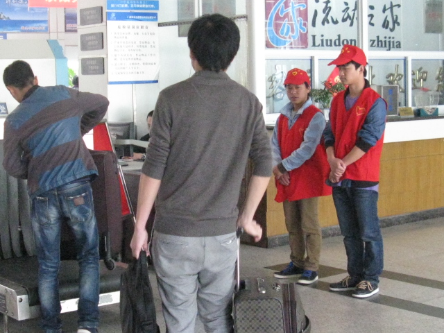 4月29日,來(lái)自麗水學(xué)院的志愿者們頭戴小紅帽,身穿紅馬甲,活躍在麗水西站售票廳、候車廳等處,熱情的為旅客們指引方向、推送行李、行包安檢、助殘幫困,多樣化的服務(wù)給旅客們帶來(lái)了許多便利,受到了廣大旅客和車站工作人員的一致好評(píng)。