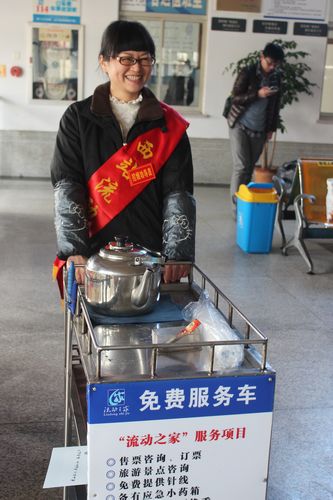 1月2日中午時分,冬日的陽光透過候車室中廳透明的玻璃頂棚,照的整個中廳暖洋洋的,引來許多候車的旅客圍坐在中廳的花壇上,一邊吃著零嘴愜意的享受著冬日里的暖陽,一邊等待檢票時間。