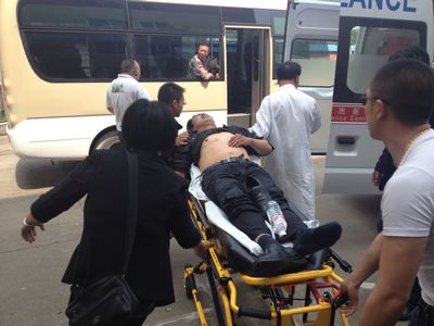 此時120急救車也趕到,通過醫(yī)生現(xiàn)場診斷確為中暑,大家就一起把病人抬上了急救車,由于大家的及時救助,為救治爭取了時間,否則后果很難想像。