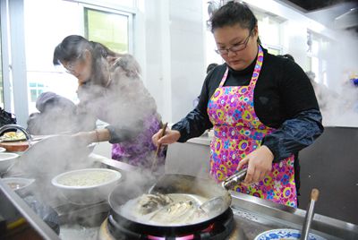 今年的女工廚藝大比拼一共吸引了集團(tuán)公司各單位和離退委的12支隊(duì)伍參加,5人一組,5個(gè)女工在組里各司其職,分為洗菜、切菜、烹飪、輔助等崗位。按照規(guī)定,每組必須根據(jù)組委會(huì)提供的原材料,在規(guī)定的時(shí)間內(nèi),制作出14道菜。