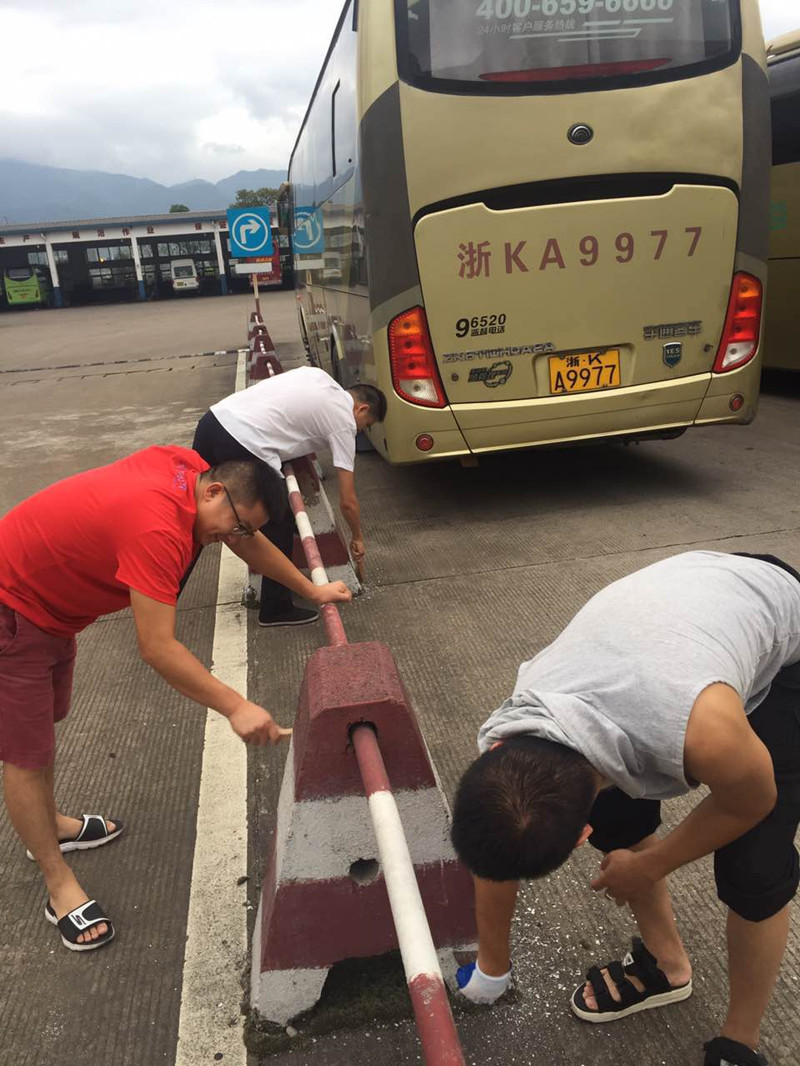 站場內(nèi)的隔離設(shè)施由于長時間的日曬雨淋,出現(xiàn)了嚴(yán)重的油漆脫落現(xiàn)象。8月31日早上6點,志愿者們又拿來鋼絲刷,先把隔離墩上還沒脫落完的油漆刷干凈,再用調(diào)好的油漆,重新粉刷隔離設(shè)施。