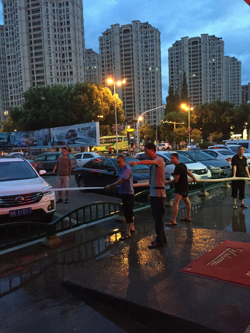 由于白天旅客進出較多,不方便沖洗,志愿者們就選擇客流相對少的時間傍晚下班時間,他們拿來掃把、水帶,對南門周邊的場地進行了徹底的沖洗。對一些“疑難雜癥”如油漬多的地面,隊員們就灑上洗衣粉,用長柄刷子刷洗后,再用水沖洗干凈。一個多小時后,夜幕已經(jīng)降臨,但看著變得更加整潔的地面,志愿者們依舊持續(xù)工作著。