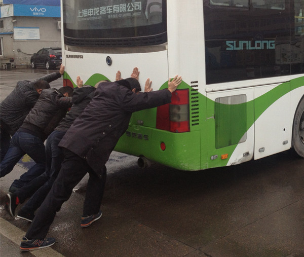 早上6時(shí)40分,開(kāi)207線(xiàn)路的公交司機(jī)高師傅來(lái)到客運(yùn)東站站前廣場(chǎng),和往常一樣,準(zhǔn)備出車(chē)。插入鑰匙,轉(zhuǎn)動(dòng)啟動(dòng)按鈕,之前的發(fā)動(dòng)機(jī)轟鳴聲卻沒(méi)聽(tīng)到,連續(xù)轉(zhuǎn)了幾次,車(chē)子還是沒(méi)反應(yīng),高師傅心里隱隱覺(jué)得肯定是出問(wèn)題了。經(jīng)過(guò)檢查,發(fā)現(xiàn)是由于天氣太冷,電瓶電力不足無(wú)法啟動(dòng)。他馬上打電話(huà)找來(lái)了車(chē)隊(duì)的兩名同事,一人把方向盤(pán),兩人推車(chē),可車(chē)子移動(dòng)過(guò)于緩慢,根本不可能通過(guò)人工打火啟動(dòng)。就這樣,207路的公交車(chē)停在了東站站前廣場(chǎng)的中央占著通道,影響了出站的交通。