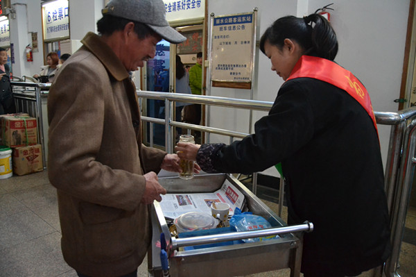 1月27日凌晨,一場不期而至的冷空氣光顧山城麗水,氣溫明顯下降。一大早,東站“流動之家”服務(wù)班的工作人員就準(zhǔn)備好熱氣騰騰的茶水,穿梭于候車室免費(fèi)為旅客送上,井然有序的候車室里,彌漫著濃濃的暖意。